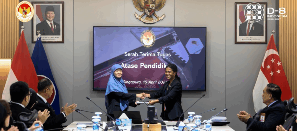 The handover ceremony for the position of Education Attaché at the Embassy of the Republic of Indonesia (KBRI) in Singapore was held on Wednesday, 15 April 2026, at the Riptaloka Room of the Embassy. In a solemn and formal atmosphere, Ms Bianca Simatupang officially transferred her duties and responsibilities to Ms Nur Aeni Ariyanti, who assumes the role as the new Education Attaché.
