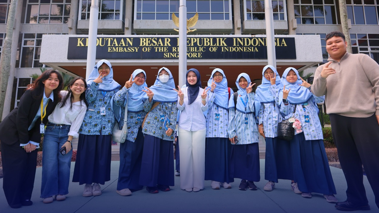 During the session, students were given insights into the role and functions of Indonesia’s diplomatic mission in Singapore. Embassy representatives shared an overview of Indonesia–Singapore relations, highlighting cooperation in education, economy, and people-to-people exchanges, while emphasising the importance of diplomacy in addressing global challenges.