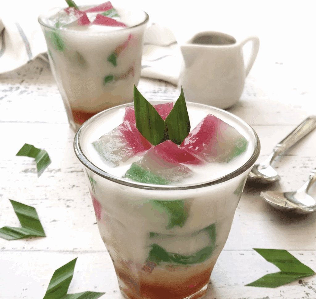 Among traditional beverages, Es Selendang Mayang offers both visual appeal and cultural significance. This colourful drink features layered rice flour jelly in shades of pink and white, served with coconut milk and palm sugar syrup. It is widely regarded as one of the most iconic Betawi refreshments, particularly during festive occasions.